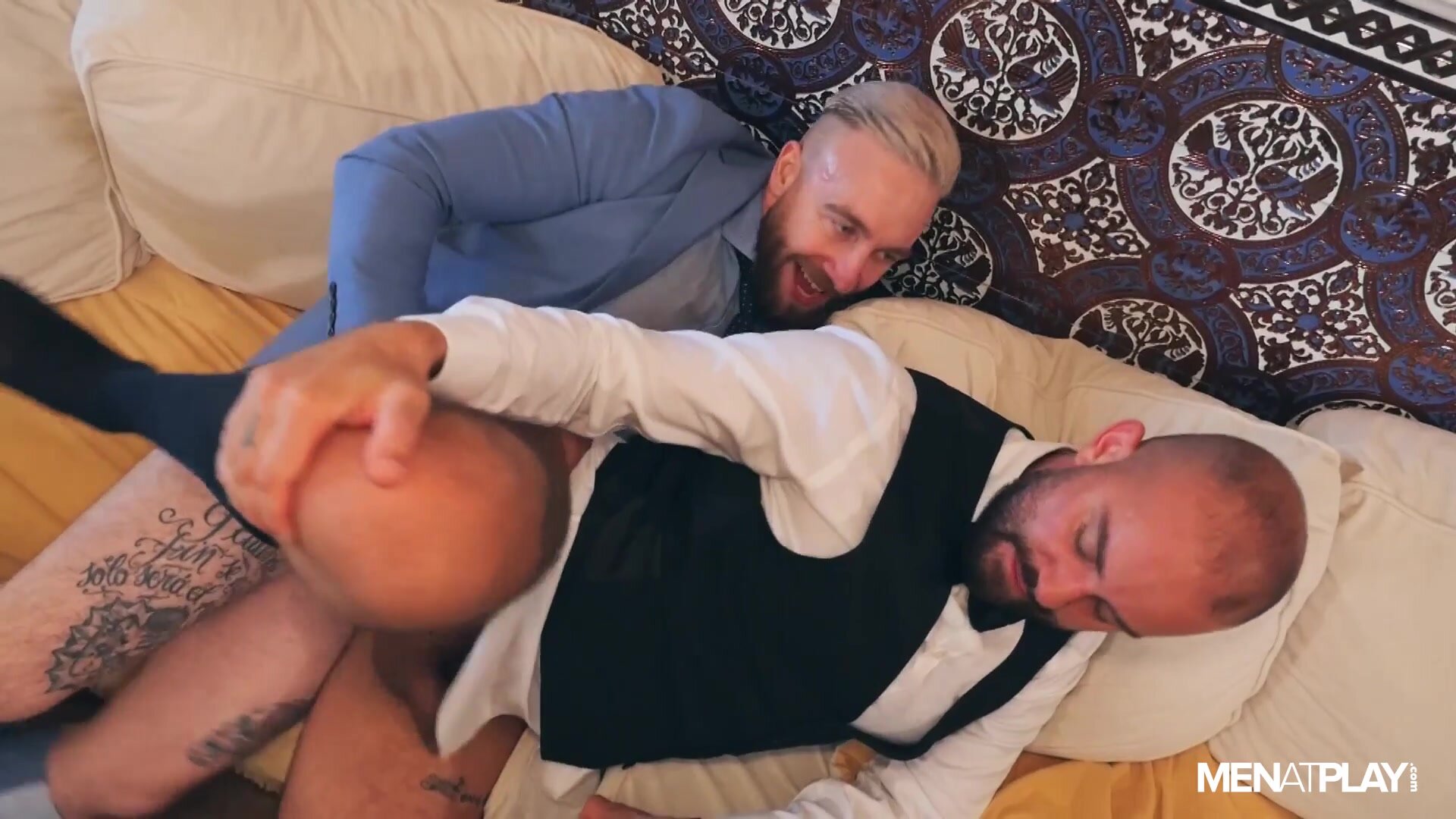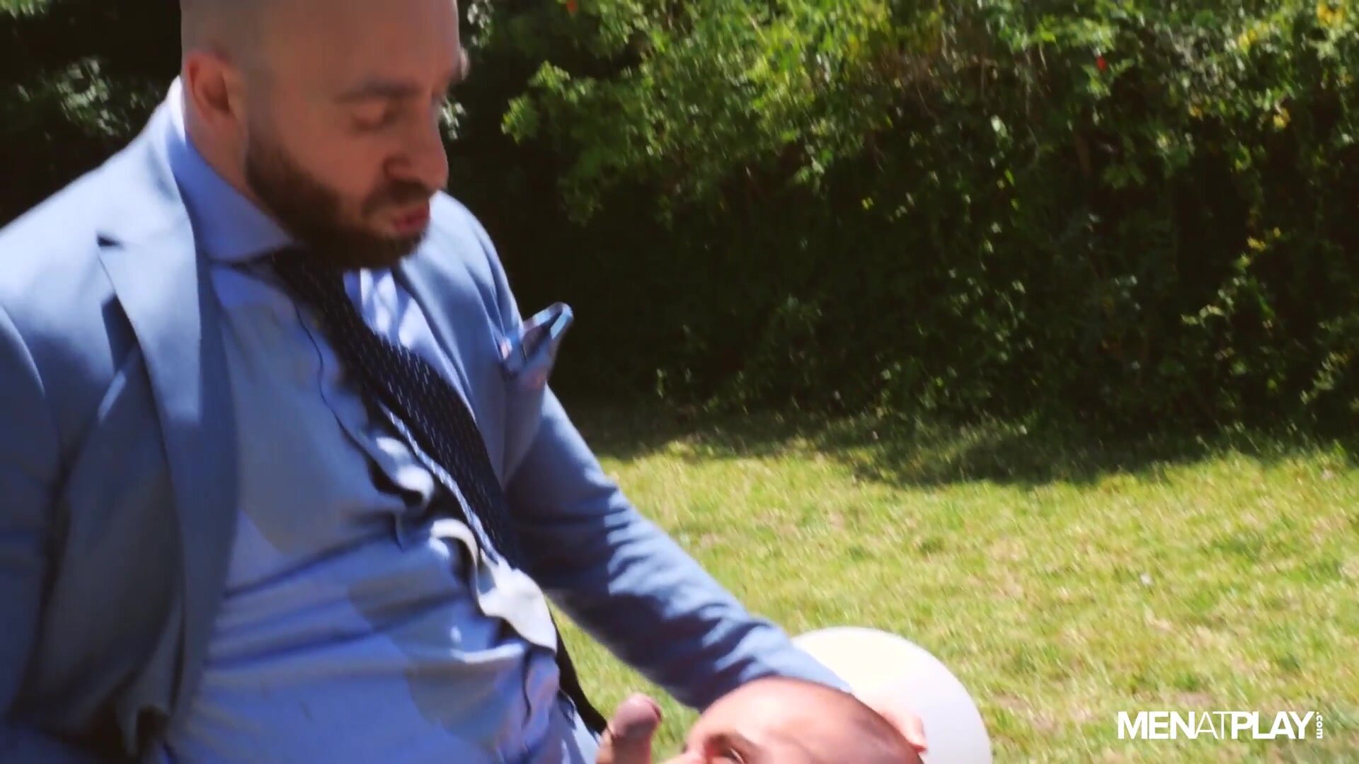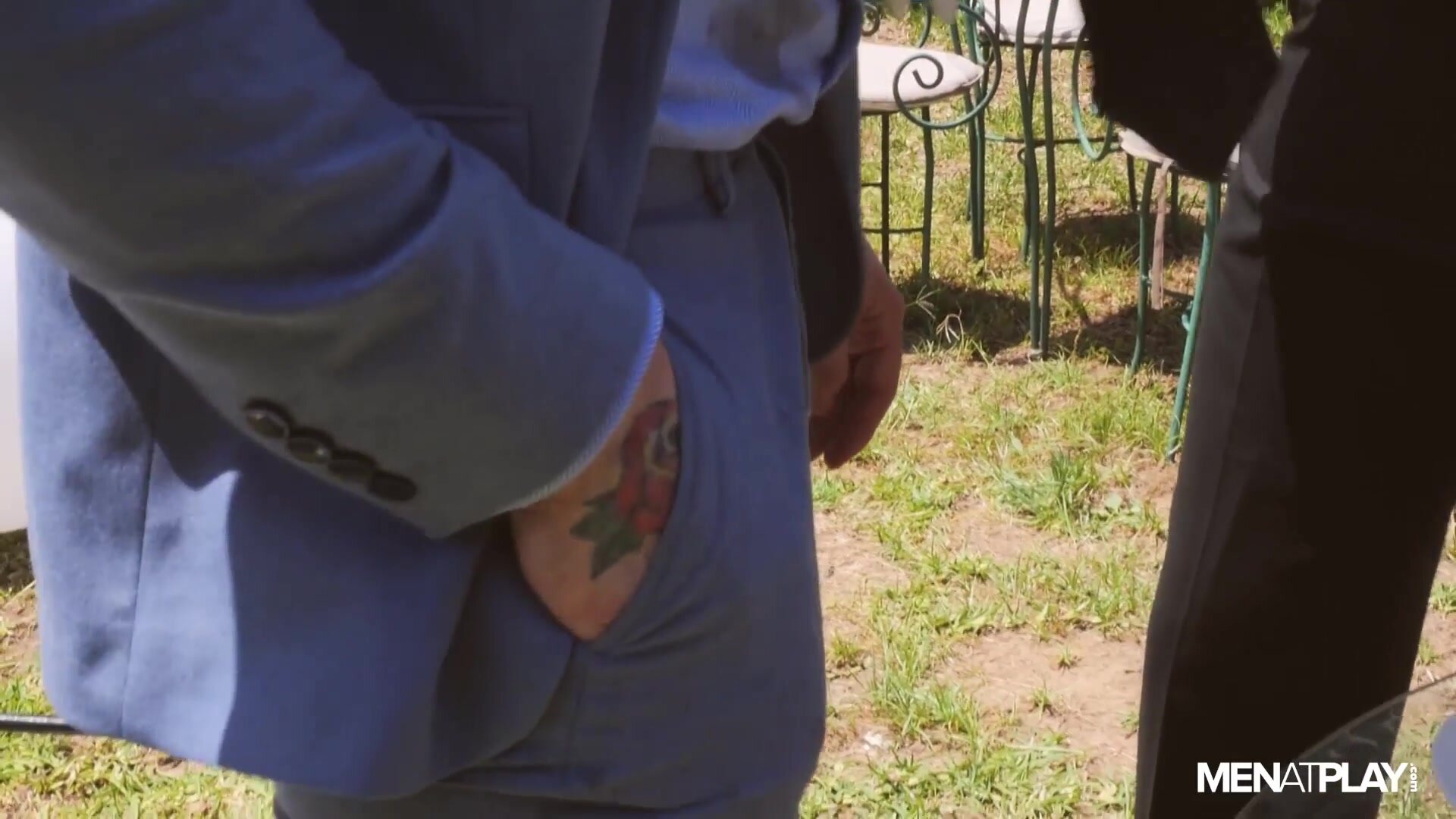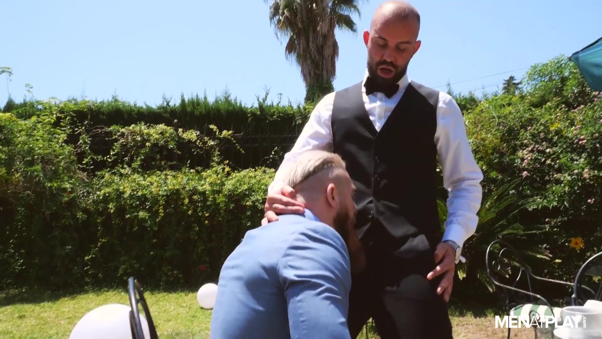 Manuel Scalco is staying in a luxury boutique hotel where Bruno Max works as a waiter. Seated in the garden, the suited stud Manuel orders breakfast. While Bruno clears other tables, Manuel cannot stop staring at his ass. And, in order to get Bruno's attention, he intentionally pours coffee over his shirt. Bruno runs to help him get cleaned up and receives a generous tip for the help.