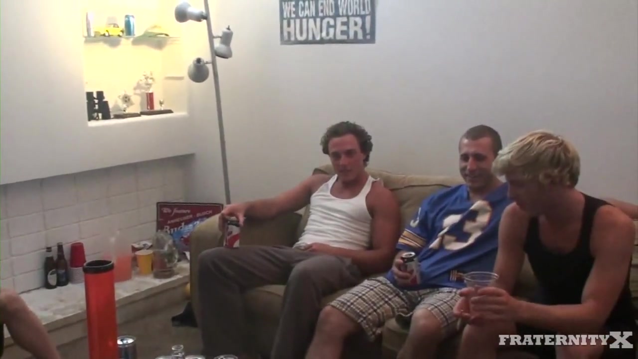 Description: After giving Jake a hard time for being a total pussy, we decided he needed to suck some cock. It doesn't take a lot to get Jake on your dick. A couple shots of vodka and a line of blow will do it. He's definitely the frat house bitch.