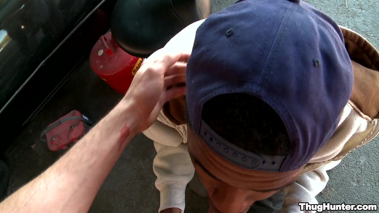 We did it again. WE set up my car with a hidden camera and I left my car keys inside all in hopes that a thug would come by and try to steal it. It didnt take long before one came along and scooped up the bait. As soon as we stopped him in his tracks, I knew I had the perfect opportunity to strike. Suck some dick and give up some ass or go to jail. Its getting so easy to hunt a thug.